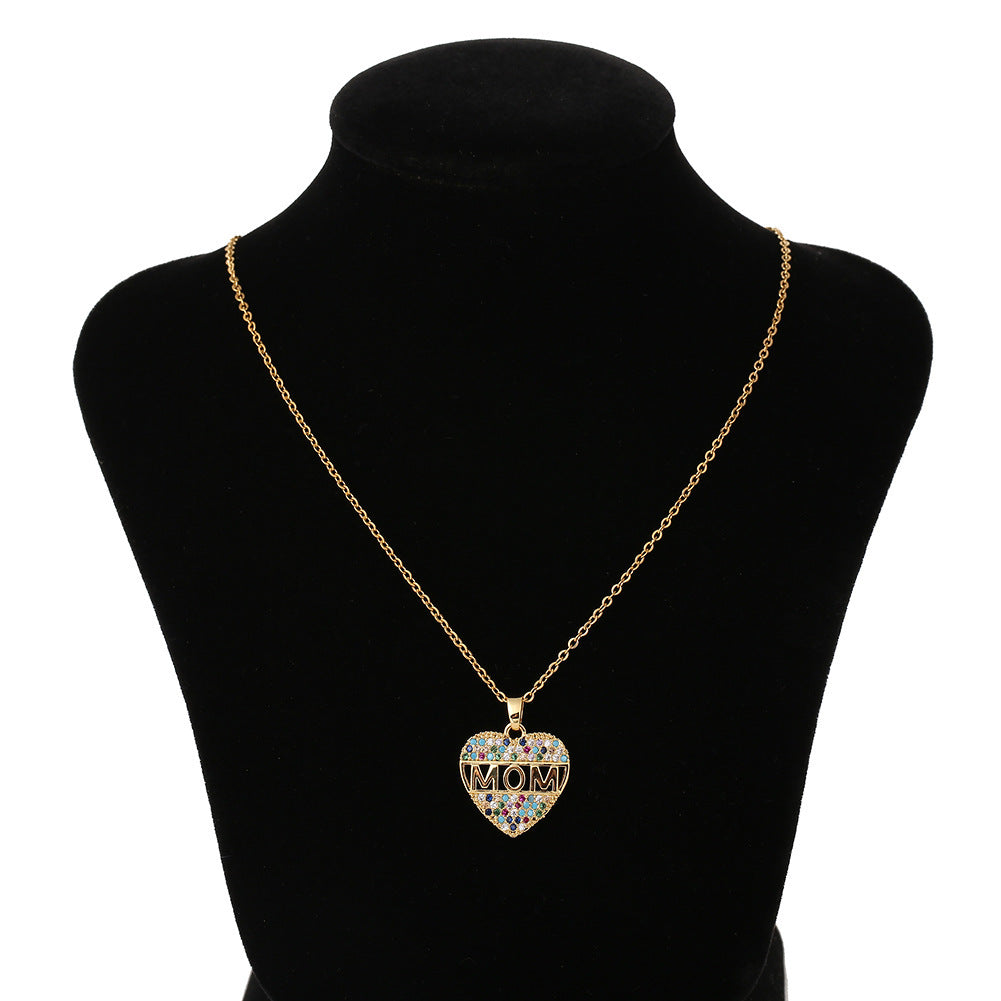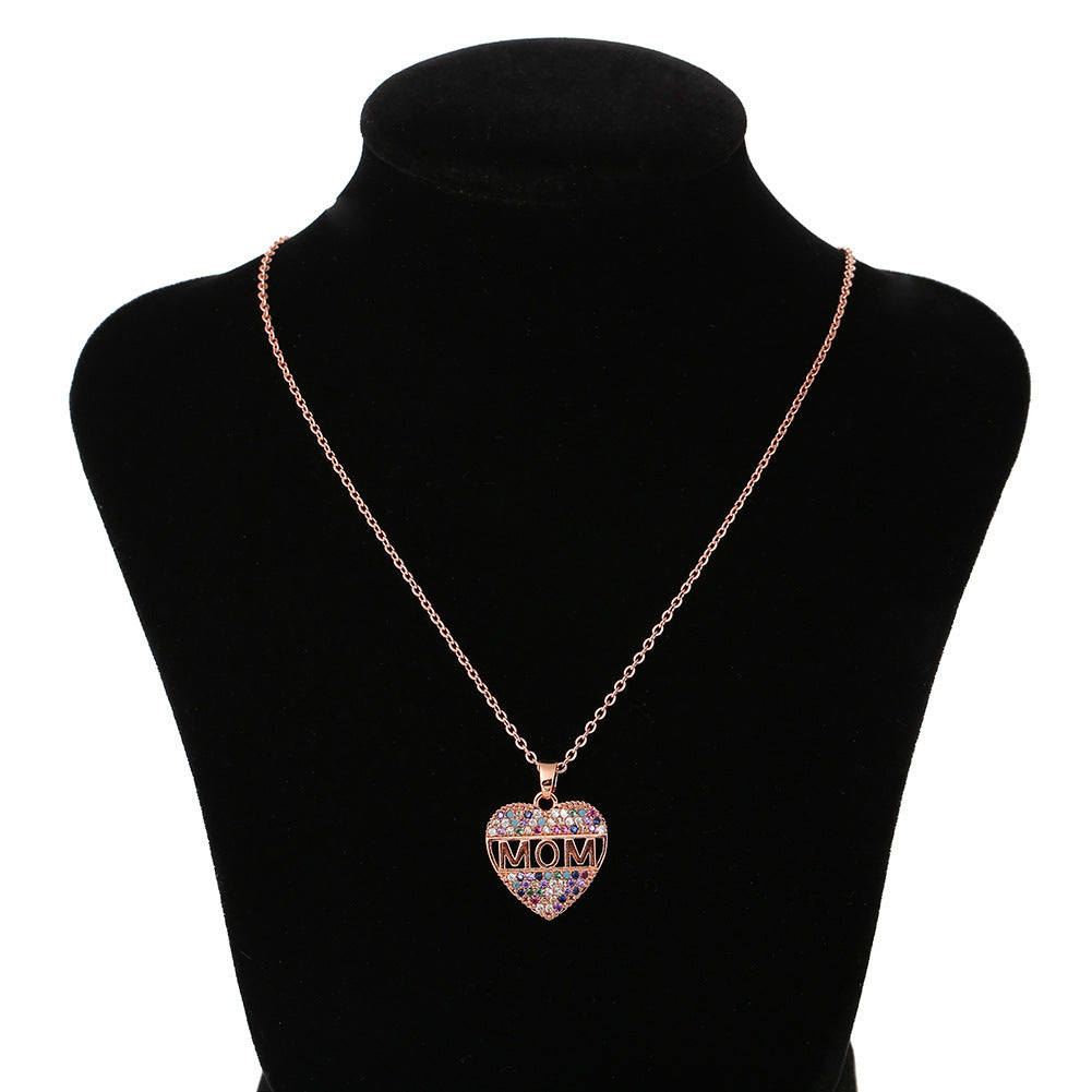 Fashion Colorful Mom Cubic Zirconia Heart Necklace Pendant Decoration